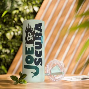 The Maars Maker JoeScuba 20 oz tumbler keeps your drinks hot for 12 hours or cold for 24, perfect for days out on the dive boat or beach. Made with double-wall, food-grade stainless steel and a powder-coated matte finish, it’s stylish, durable, and practical. Comes with a screw-on slide lid and matching straw, all BPA-free.