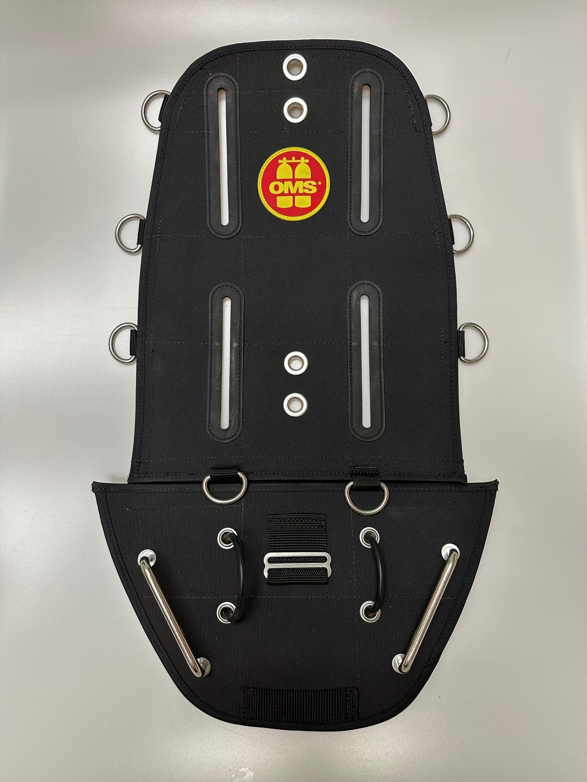 Convert your traditional backmount wing into a sidemount system effortlessly with the OMS Sidemount Adapter. This adapter is perfect for divers who want to explore more with less hassle. It attaches to almost any wing bladder using standard screws and includes multiple D-rings for securing bottles, plus a mount for a tank lamp or drysuit inflator.